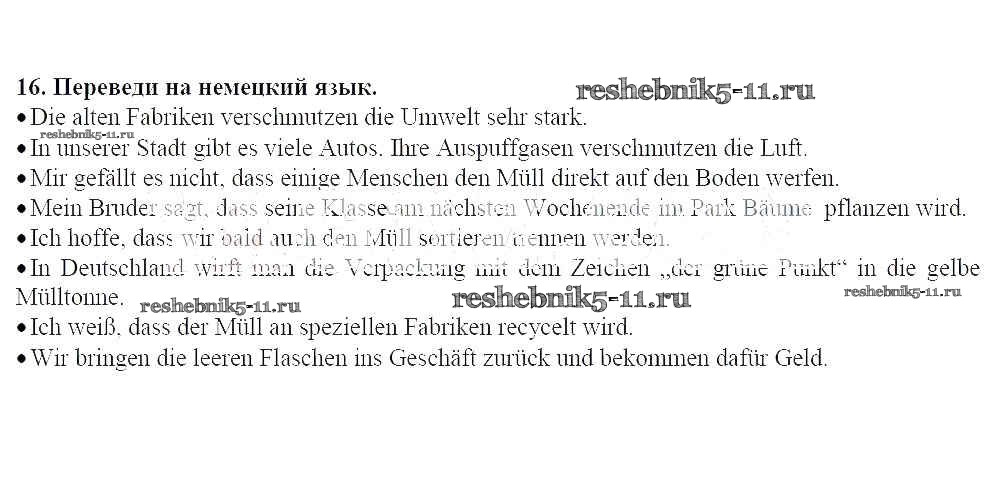 Готовая домашняя работа с ответами по Немецкому языку за 7 класс Радченко, Глушак Рабочая тетрадь Wunderkinder Просвещение 2012 ФГОС - Глава 3. Защита окружающей среды 16