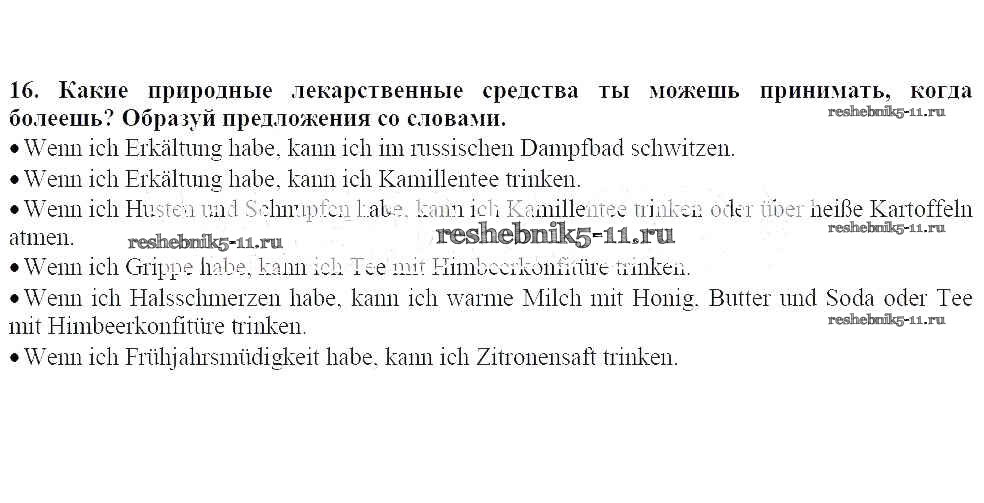 Готовая домашняя работа с ответами по Немецкому языку за 7 класс Радченко, Глушак Рабочая тетрадь Wunderkinder Просвещение 2012 ФГОС - Глава 4. Здоровье 16
