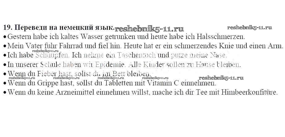 Готовая домашняя работа с ответами по Немецкому языку за 7 класс Радченко, Глушак Рабочая тетрадь Wunderkinder Просвещение 2012 ФГОС - Глава 4. Здоровье 19