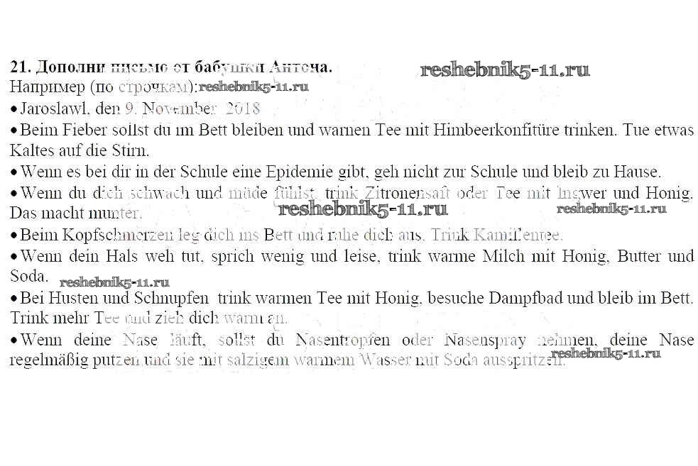 Готовая домашняя работа с ответами по Немецкому языку за 7 класс Радченко, Глушак Рабочая тетрадь Wunderkinder Просвещение 2012 ФГОС - Глава 4. Здоровье 21