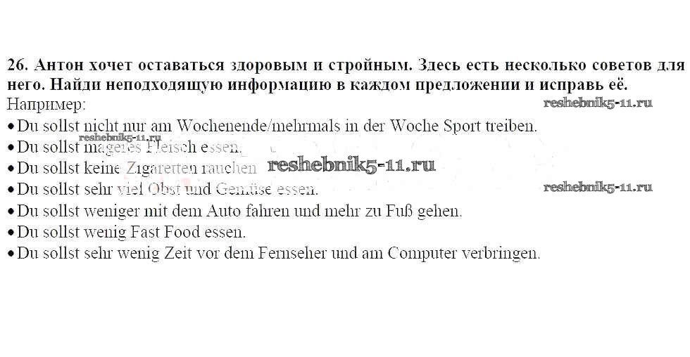 Готовая домашняя работа с ответами по Немецкому языку за 7 класс Радченко, Глушак Рабочая тетрадь Wunderkinder Просвещение 2012 ФГОС - Глава 4. Здоровье 26
