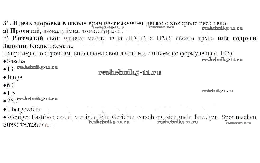 Готовая домашняя работа с ответами по Немецкому языку за 7 класс Радченко, Глушак Рабочая тетрадь Wunderkinder Просвещение 2012 ФГОС - Глава 4. Здоровье 31