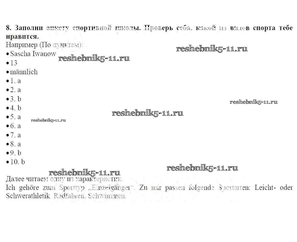 Готовая домашняя работа с ответами по Немецкому языку за 7 класс Радченко, Глушак Рабочая тетрадь Wunderkinder Просвещение 2012 ФГОС - Глава 6. Спорт 8