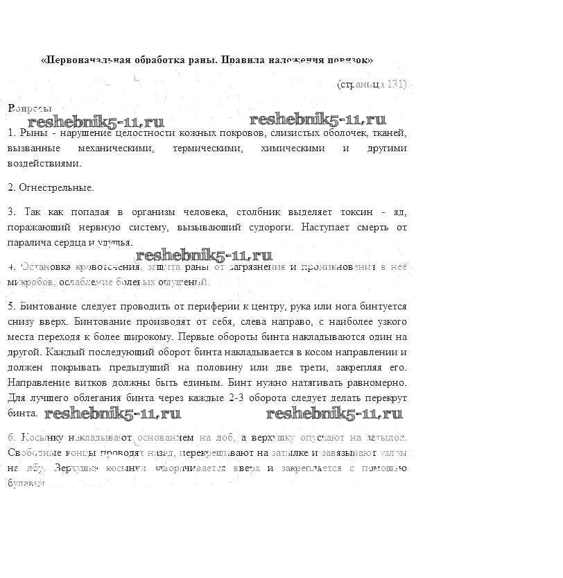 Готовая домашняя работа с ответами по ОБЖ за 7 класс Фролов, Юрьева, Шолох, Корнейчук, Мишин Учебник Дрофа 2018 ФГОС - Страницы 131
