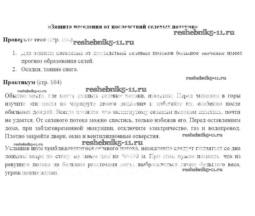 Готовая домашняя работа с ответами по ОБЖ за 7 класс Смирнов, Хренников Учебник Просвещение 2018 ФГОС - Страницы 104