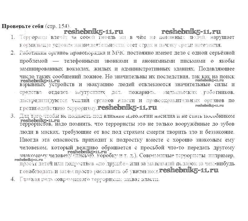 Готовая домашняя работа с ответами по ОБЖ за 7 класс Смирнов, Хренников Учебник Просвещение 2018 ФГОС - Страницы 154