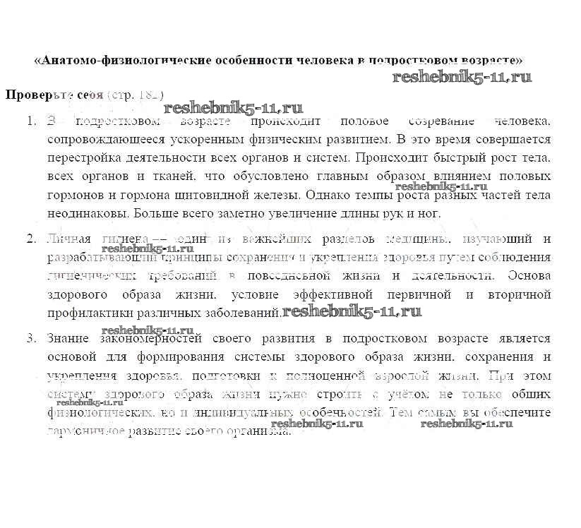 Готовая домашняя работа с ответами по ОБЖ за 7 класс Смирнов, Хренников Учебник Просвещение 2018 ФГОС - Страницы 182