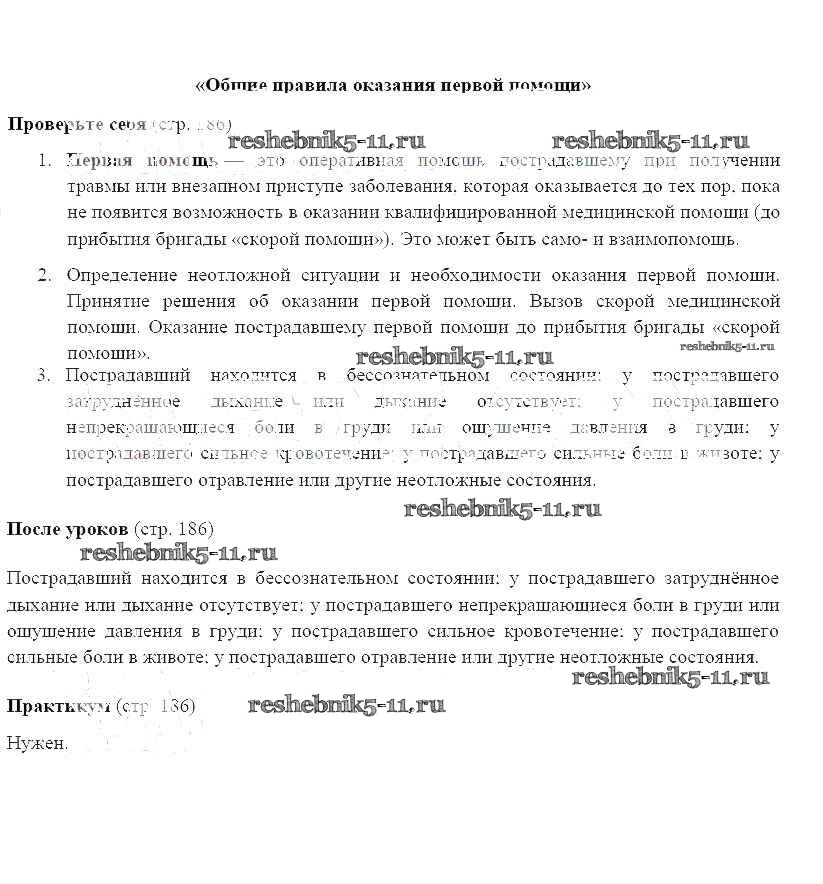 Готовая домашняя работа с ответами по ОБЖ за 7 класс Смирнов, Хренников Учебник Просвещение 2018 ФГОС - Страницы 186