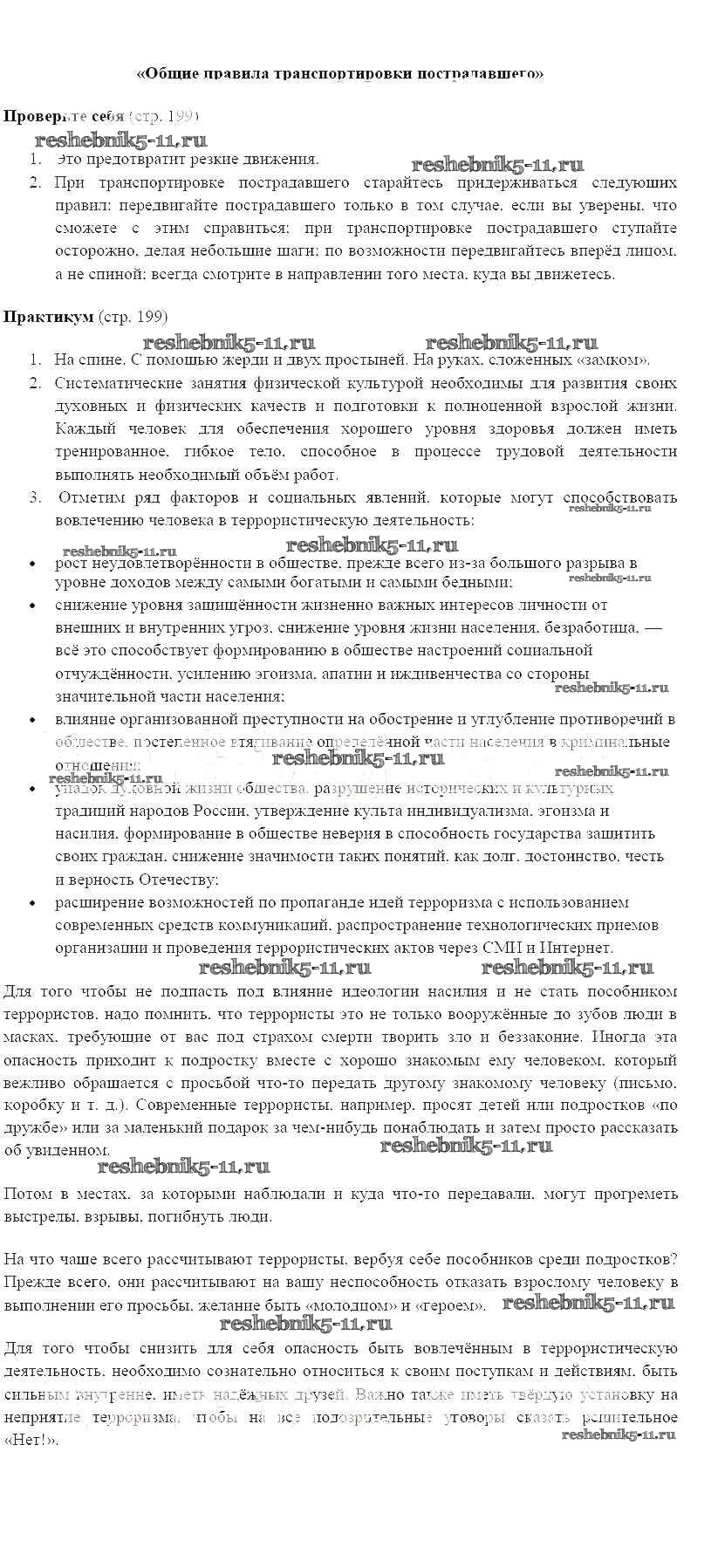 Готовая домашняя работа с ответами по ОБЖ за 7 класс Смирнов, Хренников Учебник Просвещение 2018 ФГОС - Страницы 199