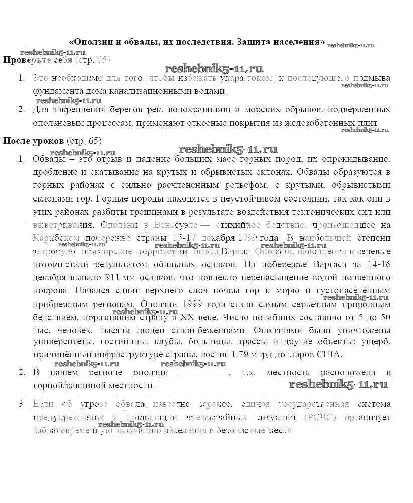 Готовая домашняя работа с ответами по ОБЖ за 7 класс Смирнов, Хренников Учебник Просвещение 2018 ФГОС - Страницы 65
