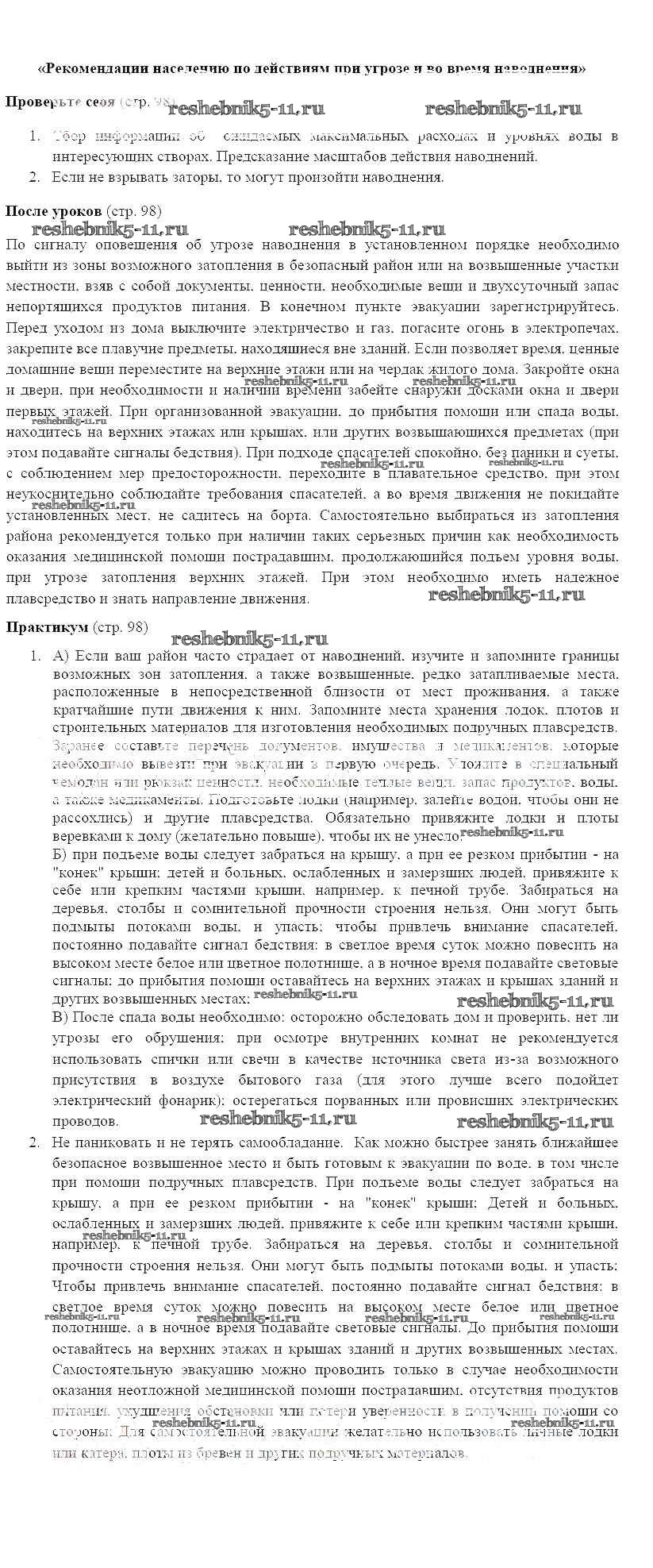 Готовая домашняя работа с ответами по ОБЖ за 7 класс Смирнов, Хренников Учебник Просвещение 2018 ФГОС - Страницы 98