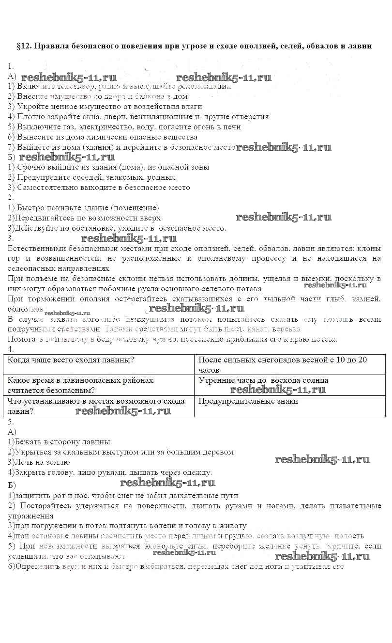 Готовая домашняя работа с ответами по ОБЖ за 7 класс Латчук, Миронов, Бурдакова Рабочая тетрадь Вертикаль Дрофа 2017 ФГОС - Параграфы §12