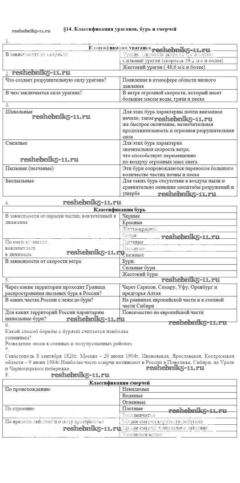 Готовая домашняя работа с ответами по ОБЖ за 7 класс Латчук, Миронов, Бурдакова Рабочая тетрадь Вертикаль Дрофа 2017 ФГОС - Параграфы §14