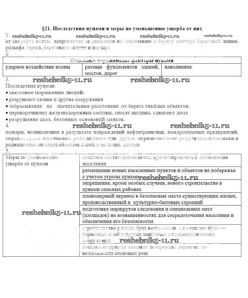 Готовая домашняя работа с ответами по ОБЖ за 7 класс Латчук, Миронов, Бурдакова Рабочая тетрадь Вертикаль Дрофа 2017 ФГОС - Параграфы §21