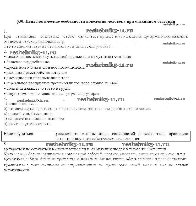 Готовая домашняя работа с ответами по ОБЖ за 7 класс Латчук, Миронов, Бурдакова Рабочая тетрадь Вертикаль Дрофа 2017 ФГОС - Параграфы §30