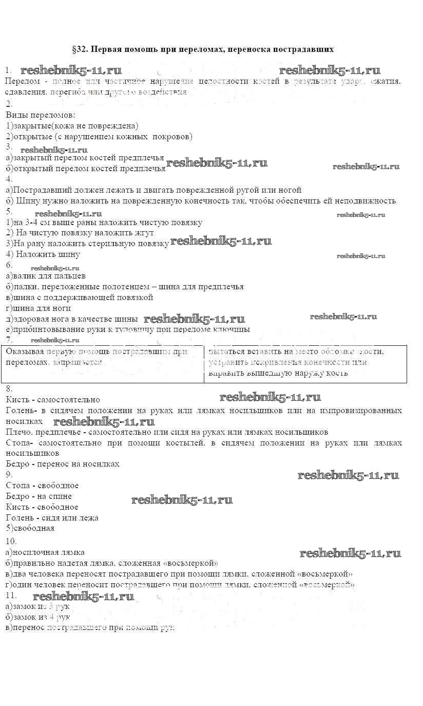 Готовая домашняя работа с ответами по ОБЖ за 7 класс Латчук, Миронов, Бурдакова Рабочая тетрадь Вертикаль Дрофа 2017 ФГОС - Параграфы §32