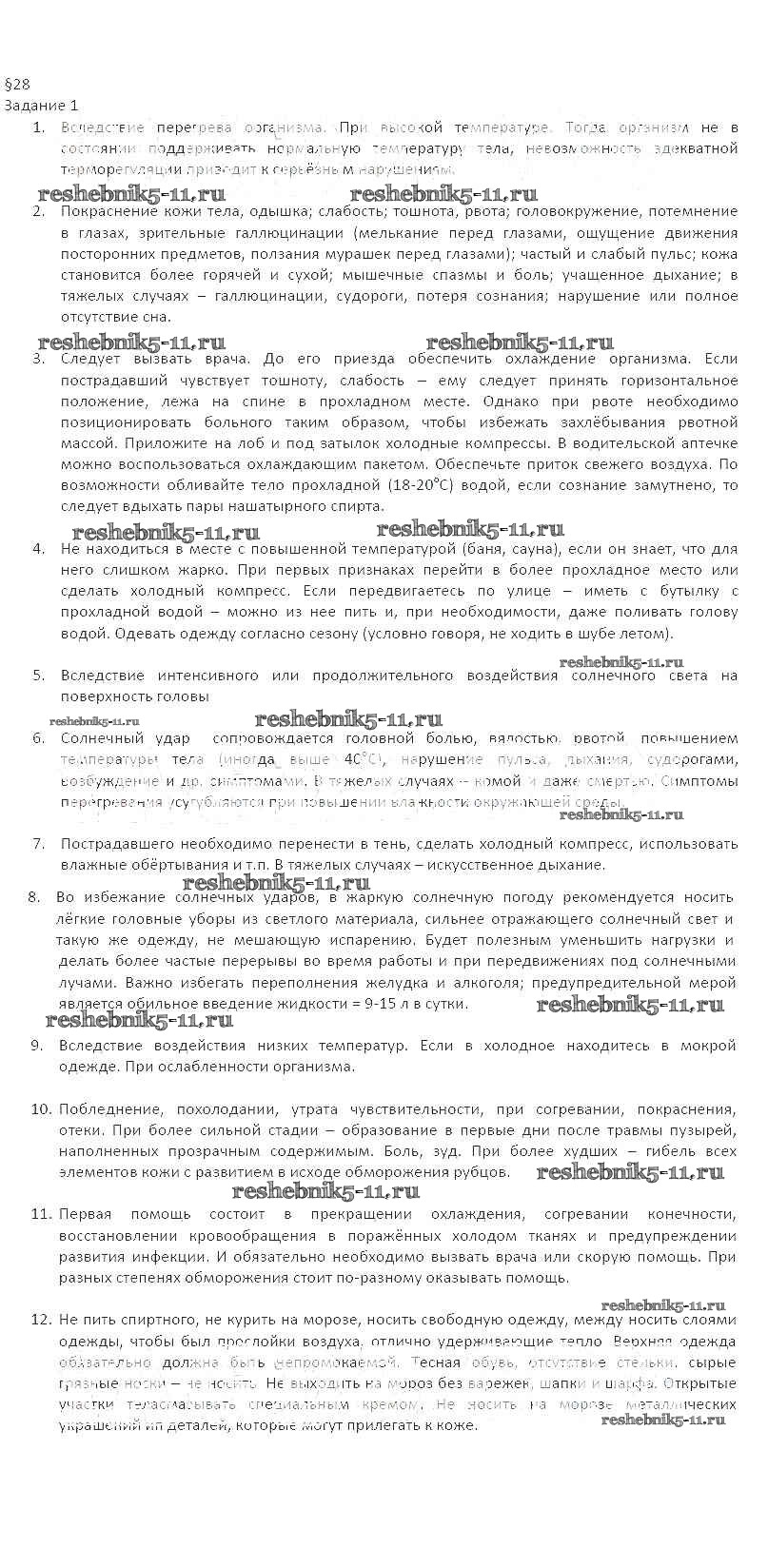 Готовая домашняя работа с ответами по ОБЖ за 7 класс Подолян Рабочая тетрадь Дрофа 2017 - §28 1