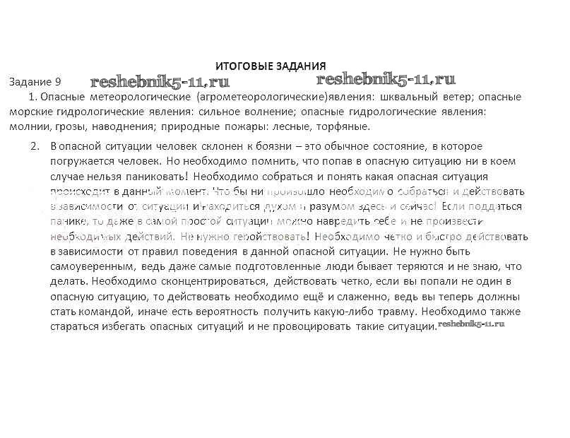 Готовая домашняя работа с ответами по ОБЖ за 7 класс Подолян Рабочая тетрадь Дрофа 2017 - Итоговые задания 9