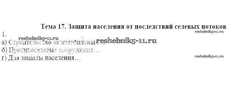Готовая домашняя работа с ответами по ОБЖ за 7 класс Демидов Рабочая тетрадь Лицей 2016 - Тема 17. Защита населения от последствий селевых потоков 1