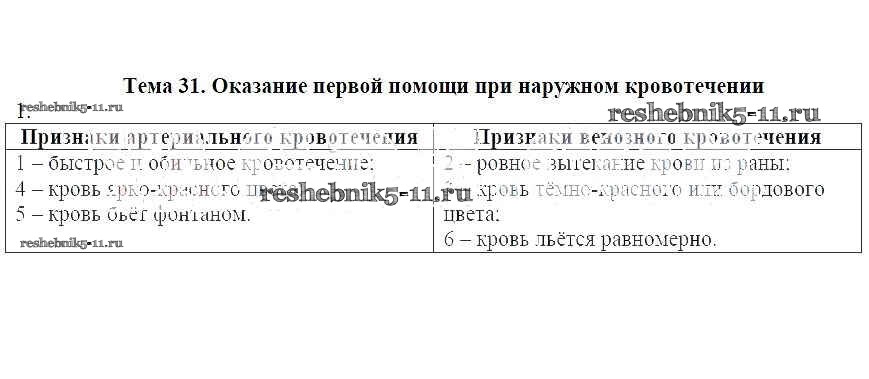 Готовая домашняя работа с ответами по ОБЖ за 7 класс Демидов Рабочая тетрадь Лицей 2016 - Тема 31. Оказание первой помощи при наружном кровотечении 1