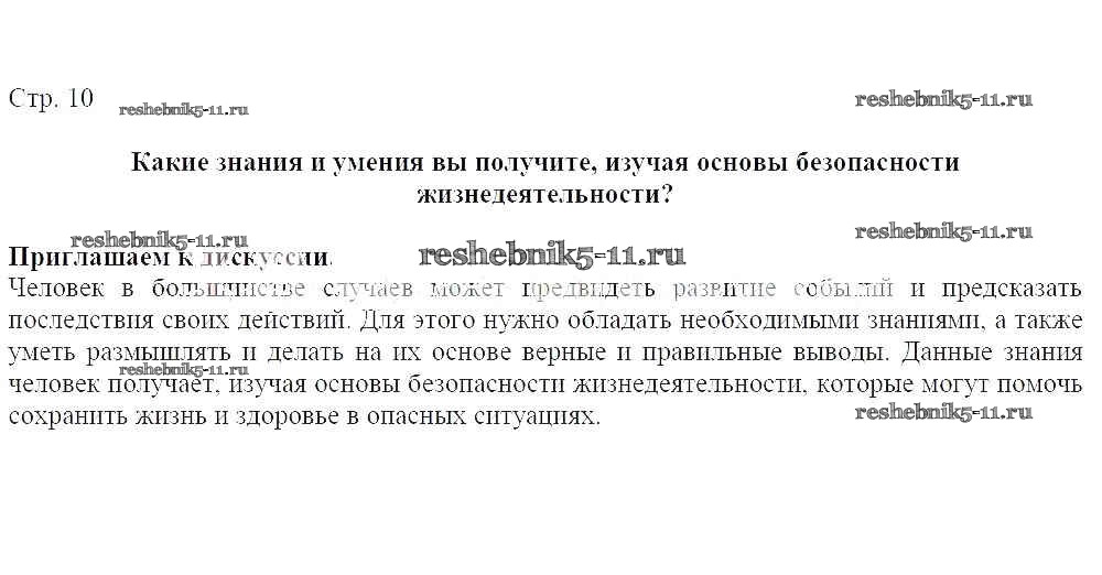 Готовая домашняя работа с ответами по ОБЖ за 7, 8, 9 класс Виноградова, Таранин, Смирнов, Сидоренко Учебник Алгоритм успеха Вентана-граф 2019 ФГОС - Страницы 10