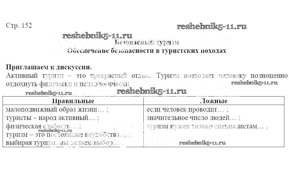 Готовая домашняя работа с ответами по ОБЖ за 7, 8, 9 класс Виноградова, Таранин, Смирнов, Сидоренко Учебник Алгоритм успеха Вентана-граф 2019 ФГОС - Страницы 152
