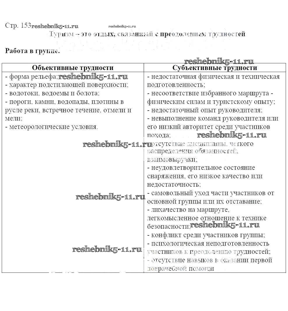 Готовая домашняя работа с ответами по ОБЖ за 7, 8, 9 класс Виноградова, Таранин, Смирнов, Сидоренко Учебник Алгоритм успеха Вентана-граф 2019 ФГОС - Страницы 153