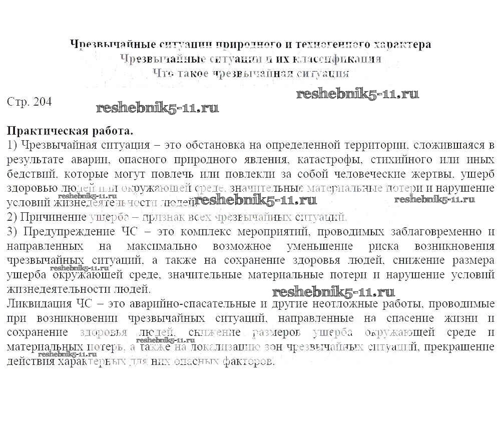 Готовая домашняя работа с ответами по ОБЖ за 7, 8, 9 класс Виноградова, Таранин, Смирнов, Сидоренко Учебник Алгоритм успеха Вентана-граф 2019 ФГОС - Страницы 204