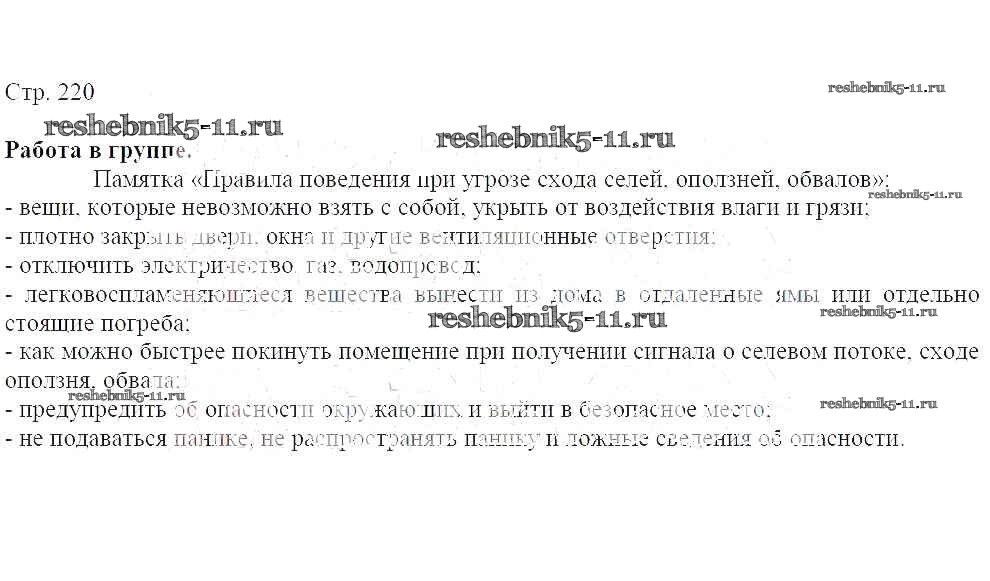 Готовая домашняя работа с ответами по ОБЖ за 7, 8, 9 класс Виноградова, Таранин, Смирнов, Сидоренко Учебник Алгоритм успеха Вентана-граф 2019 ФГОС - Страницы 220