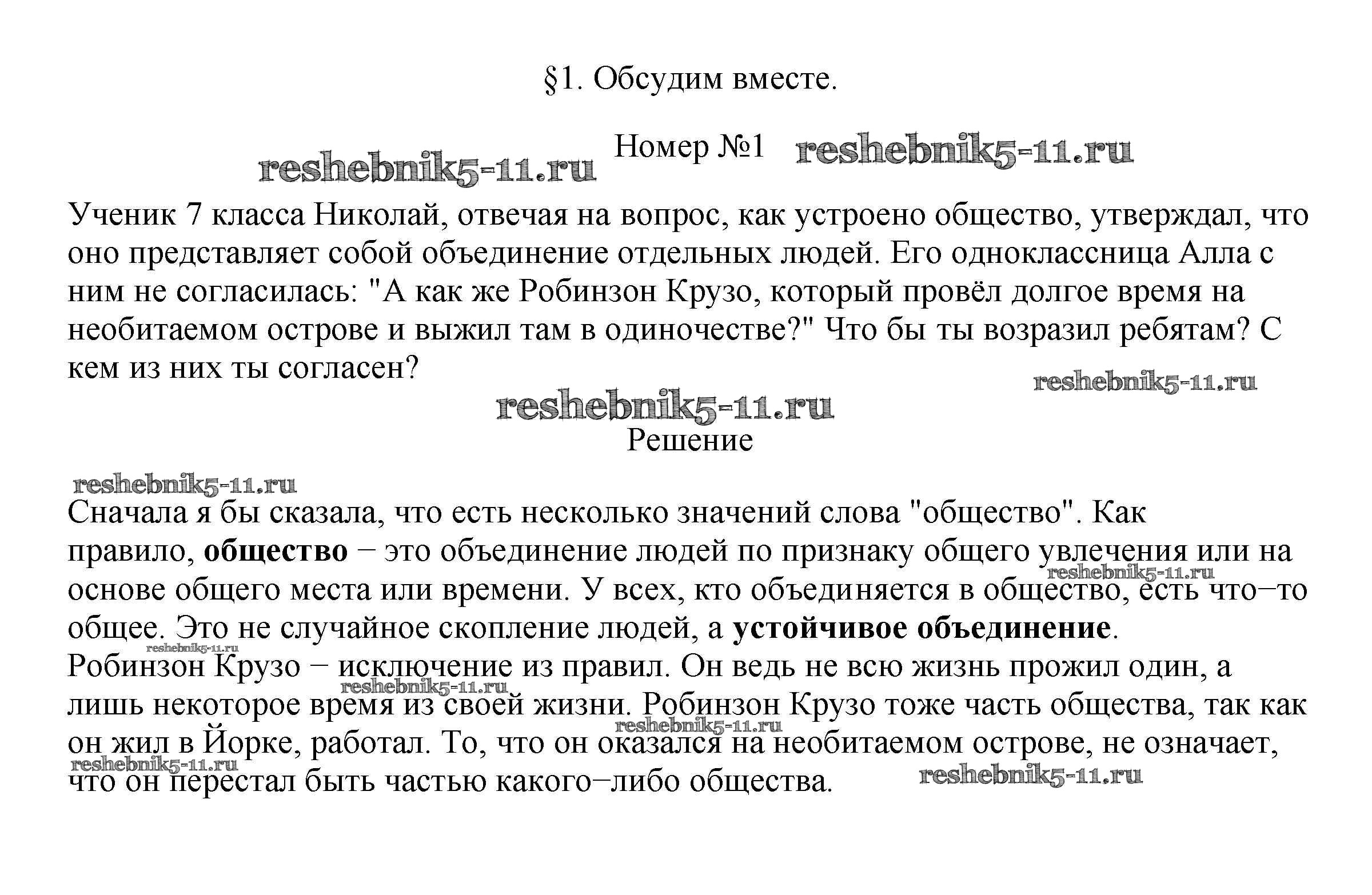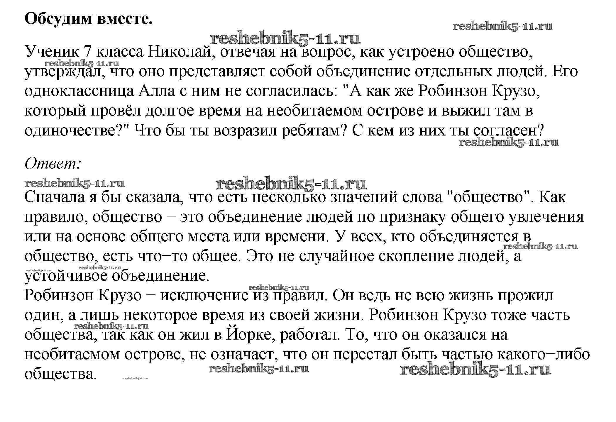 Готовая домашняя работа с ответами по Обществознанию за 7 класс Боголюбов, Городецкая, Иванова, Лискова, Матвеев, Котова, Рутковская Учебник Академический школьный учебник Просвещение 2015 ФГОС - Обсудим вместе 1