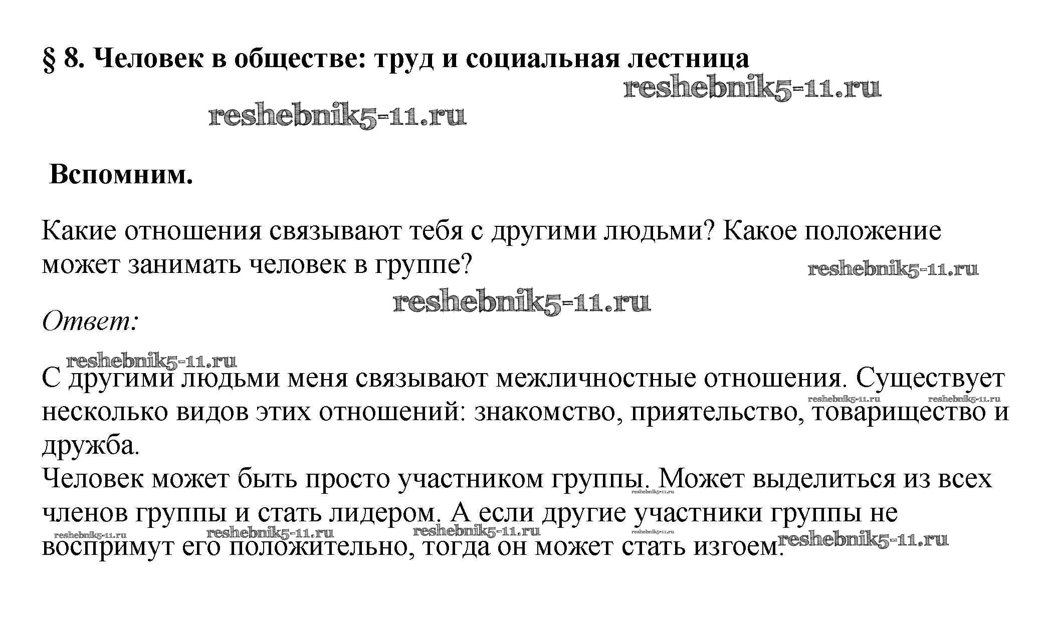 Готовая домашняя работа с ответами по Обществознанию за 7 класс Боголюбов, Городецкая, Иванова, Лискова, Матвеев, Котова, Рутковская Учебник Академический школьный учебник Просвещение 2015 ФГОС - Вспомним 1