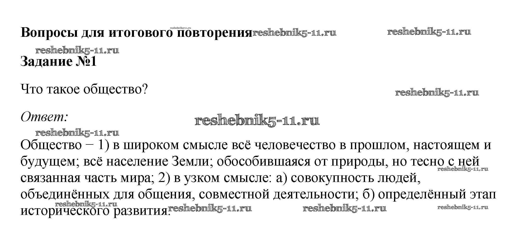 Готовая домашняя работа с ответами по Обществознанию за 7 класс Боголюбов, Городецкая, Иванова, Лискова, Матвеев, Котова, Рутковская Учебник Академический школьный учебник Просвещение 2015 ФГОС - Вопросы для итогового повторения 1
