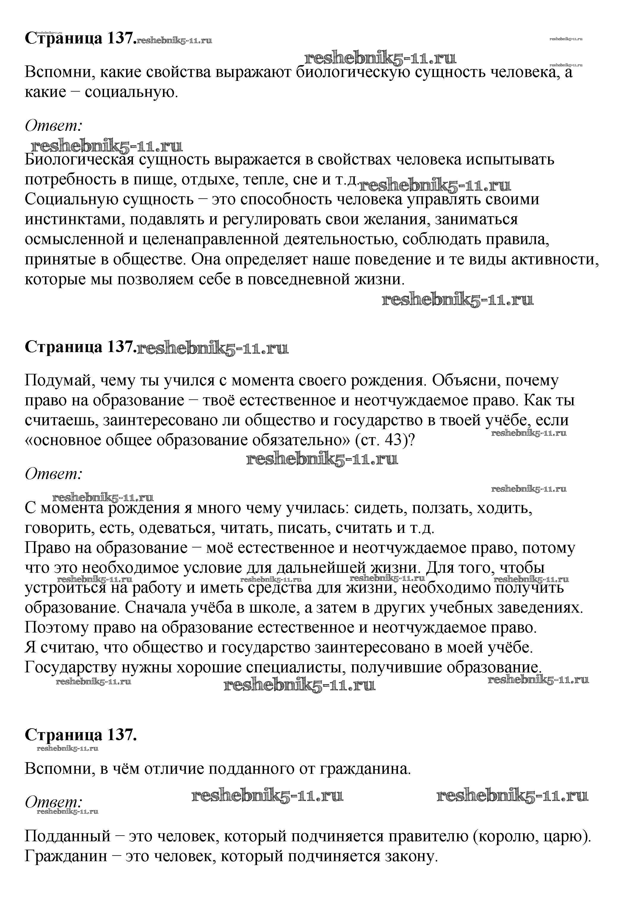 Готовая домашняя работа с ответами по Обществознанию за 7 класс Боголюбов, Городецкая, Иванова, Лискова, Матвеев, Котова, Рутковская Учебник Академический школьный учебник Просвещение 2015 ФГОС - Вопросы стр.137