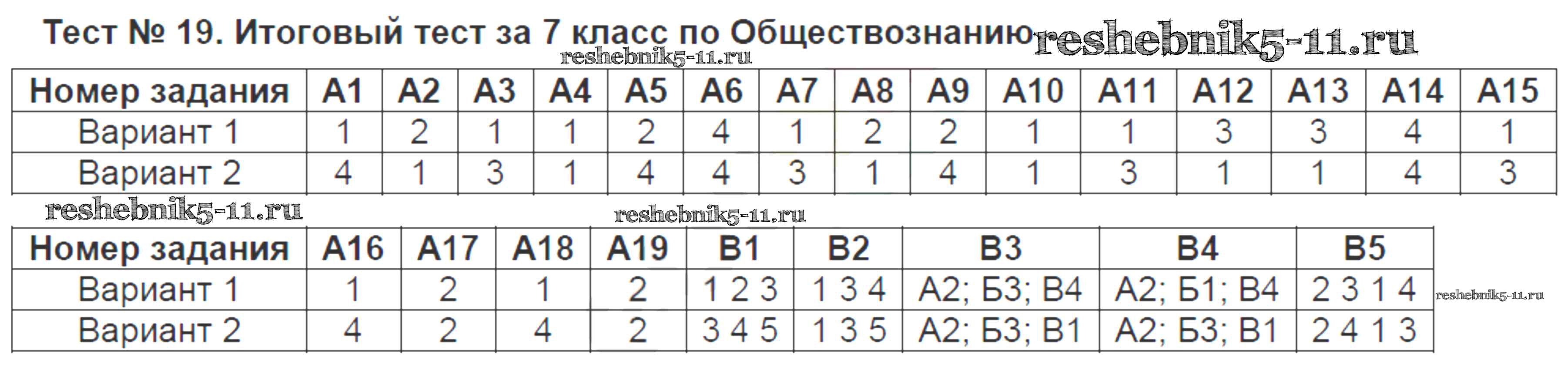 Решебник / тест / тест №19. итоговый тест за 7 класс по Обществознанию