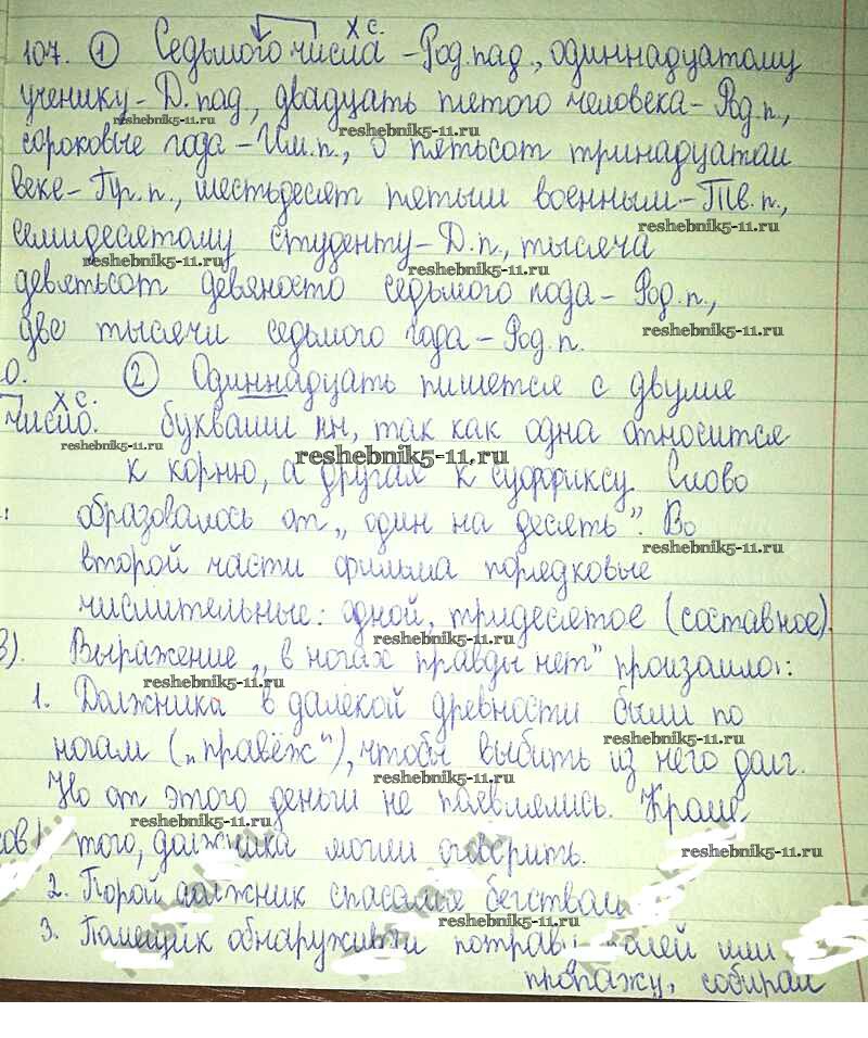 Готовая домашняя работа с ответами по Русскому языку за 7 класс Львова, Львов Учебник УМК Часть 1, 2, 3 Мнемозина 2012 ФГОС - Упражнения 107