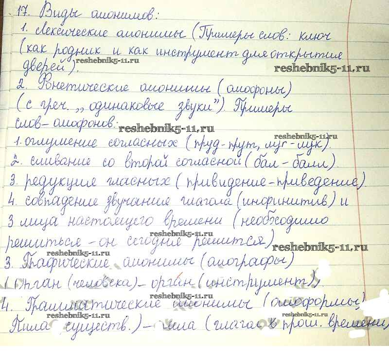 Готовая домашняя работа с ответами по Русскому языку за 7 класс Львова, Львов Учебник УМК Часть 1, 2, 3 Мнемозина 2012 ФГОС - Упражнения 17