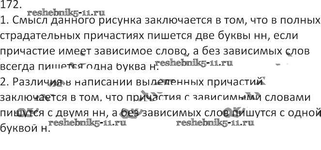 Готовая домашняя работа с ответами по Русскому языку за 7 класс Львова, Львов Учебник УМК Часть 1, 2, 3 Мнемозина 2012 ФГОС - Упражнения 172