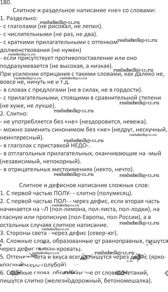 Готовая домашняя работа с ответами по Русскому языку за 7 класс Львова, Львов Учебник УМК Часть 1, 2, 3 Мнемозина 2012 ФГОС - Упражнения 180
