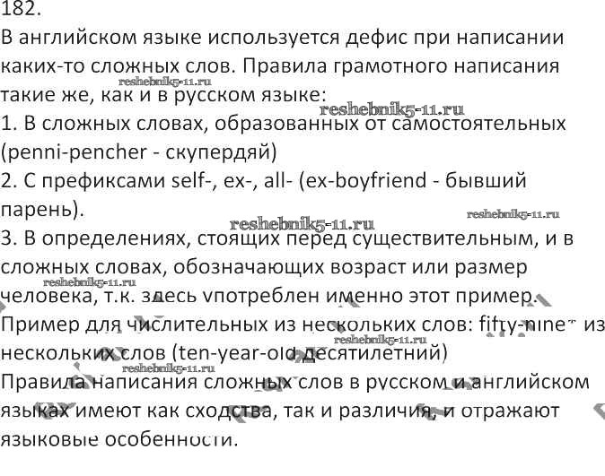 Готовая домашняя работа с ответами по Русскому языку за 7 класс Львова, Львов Учебник УМК Часть 1, 2, 3 Мнемозина 2012 ФГОС - Упражнения 182