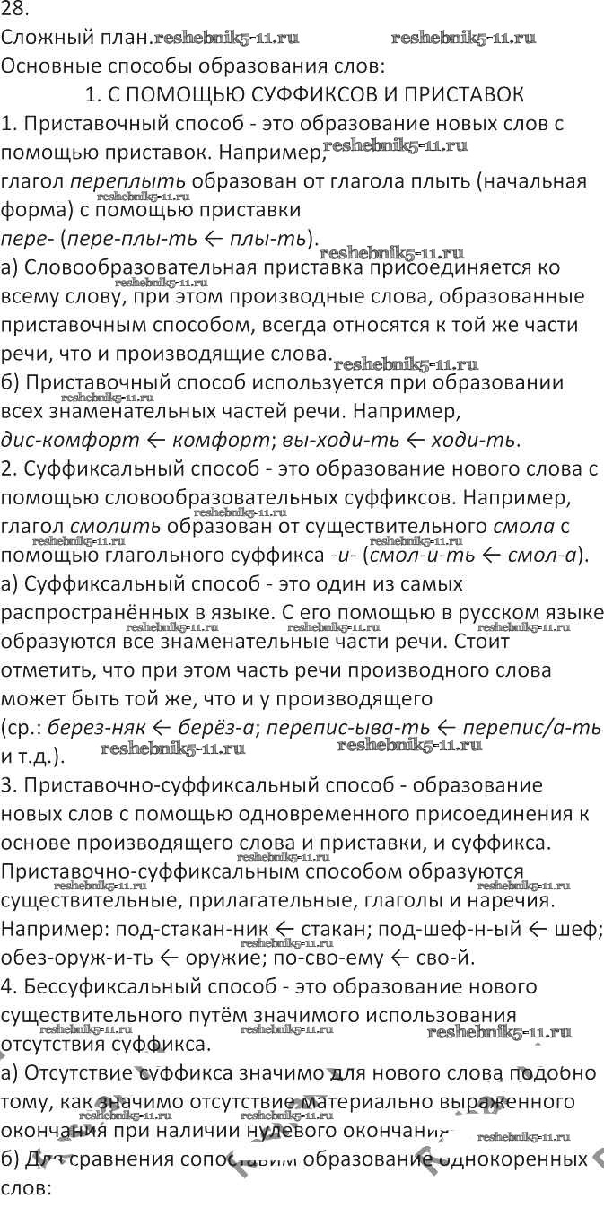 Готовая домашняя работа с ответами по Русскому языку за 7 класс Львова, Львов Учебник УМК Часть 1, 2, 3 Мнемозина 2012 ФГОС - Упражнения 28