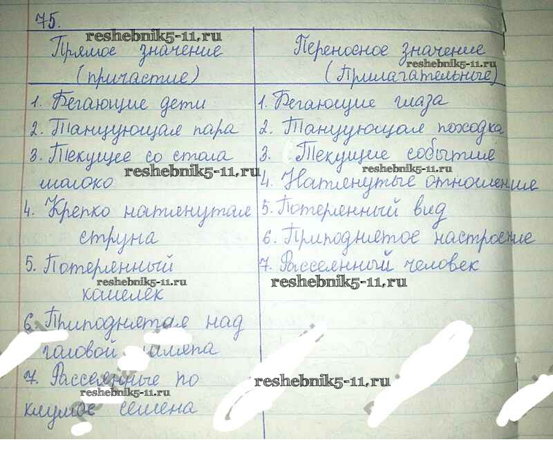 Готовая домашняя работа с ответами по Русскому языку за 7 класс Львова, Львов Учебник УМК Часть 1, 2, 3 Мнемозина 2012 ФГОС - Упражнения 75
