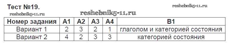 Готовая домашняя работа с ответами по Русскому языку за 7 класс Егорова Контрольно-измерительные материалы (КИМ) ВАКО 2017 ФГОС - Ответы к тестам 19