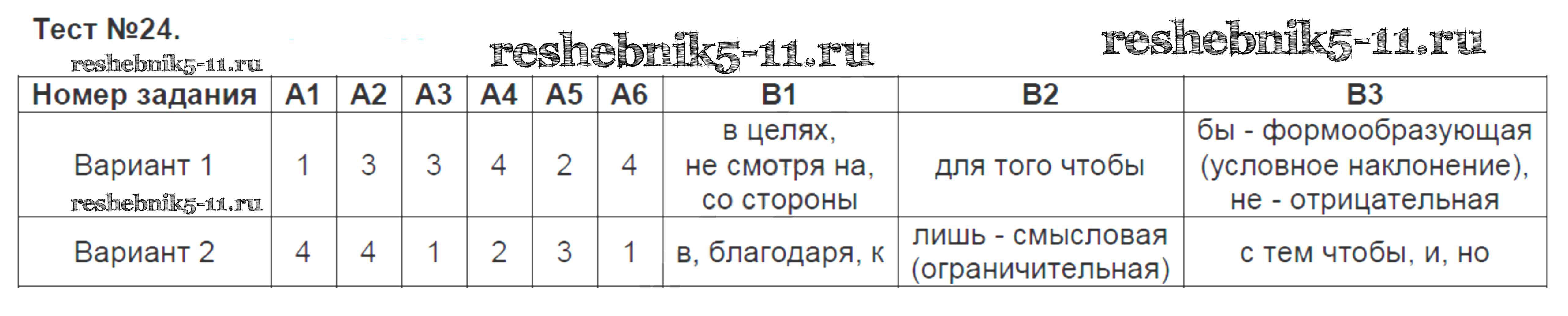 Готовая домашняя работа с ответами по Русскому языку за 7 класс Егорова Контрольно-измерительные материалы (КИМ) ВАКО 2017 ФГОС - Ответы к тестам 24