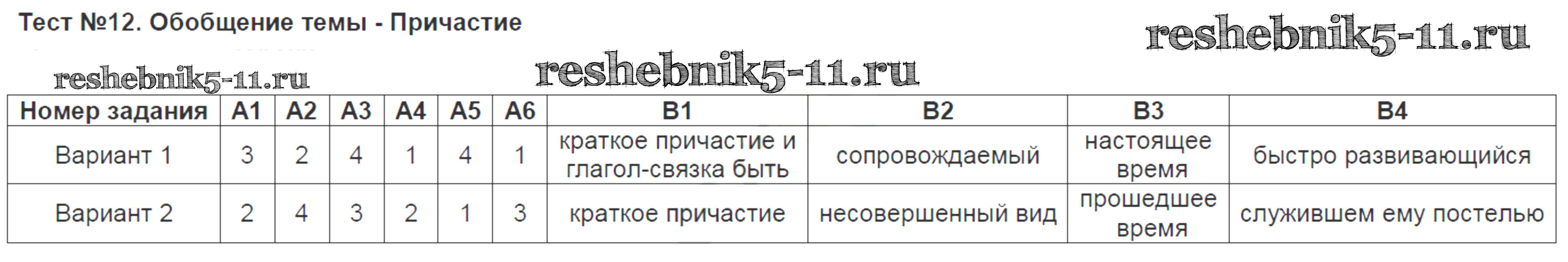 Готовая домашняя работа с ответами по Русскому языку за 7 класс Потапова Контрольно-измерительные материалы (КИМ) Экзамен 2015 ФГОС - Тест 12