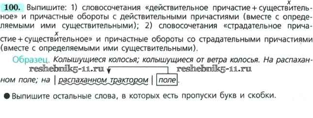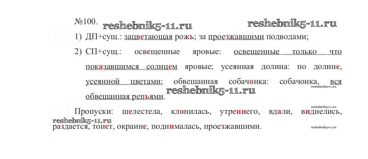 Готовая домашняя работа с ответами по Русскому языку за 7 класс Баранов, Ладыженская, Тростенцова Учебник УМК Просвещение 2015 ФГОС - Упражнения 100