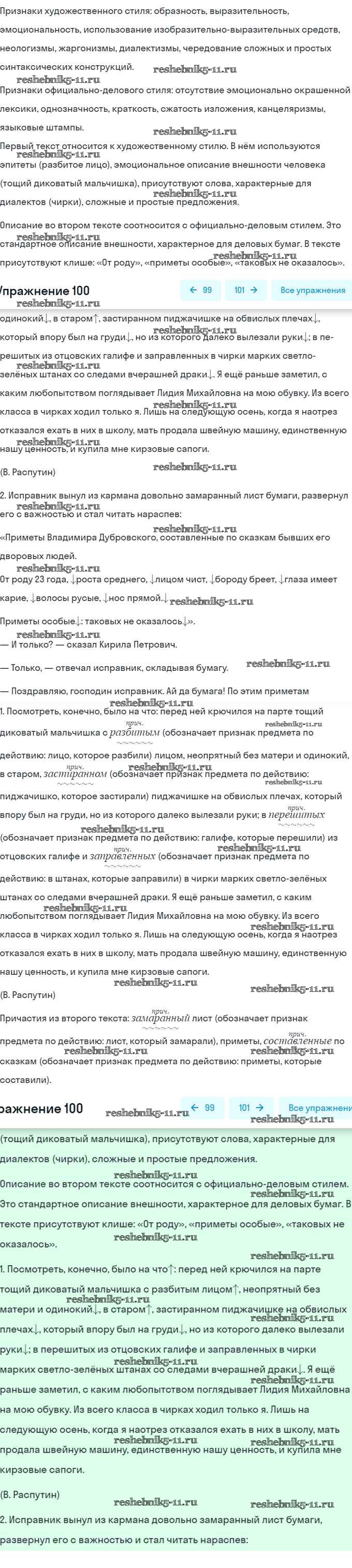 Русский язык за 7 класс Баранов Учебник Просвещение упражнение 100