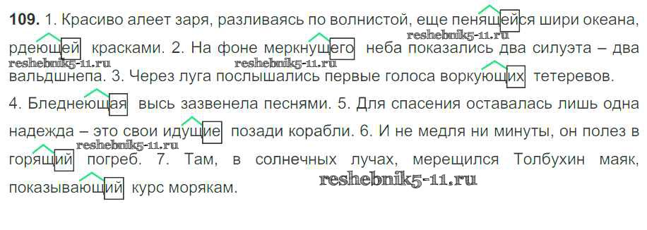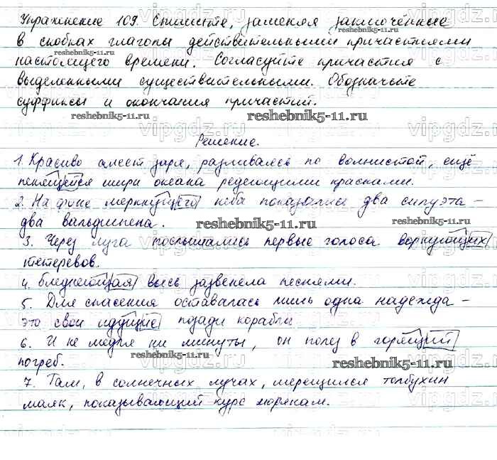 Готовая домашняя работа с ответами по Русскому языку за 7 класс Баранов, Ладыженская, Тростенцова Учебник УМК Просвещение 2015 ФГОС - Упражнения 109