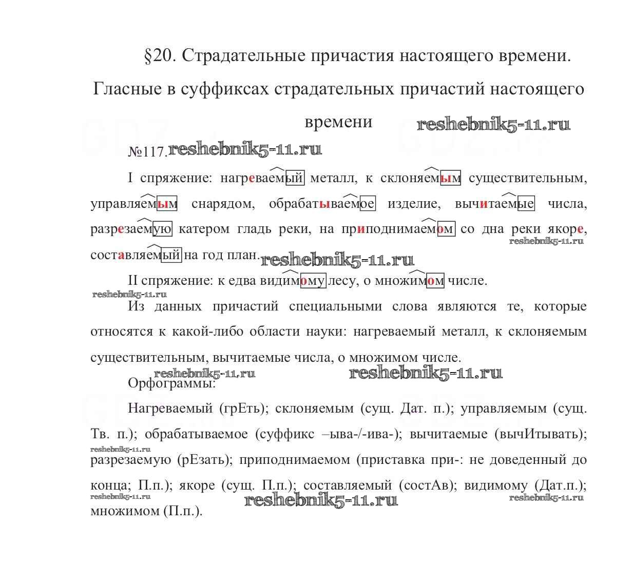 Готовая домашняя работа с ответами по Русскому языку за 7 класс Баранов, Ладыженская, Тростенцова Учебник УМК Просвещение 2015 ФГОС - Упражнения 117