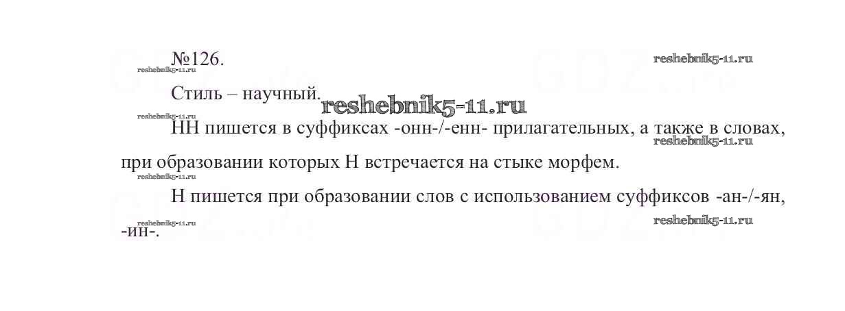 Готовая домашняя работа с ответами по Русскому языку за 7 класс Баранов, Ладыженская, Тростенцова Учебник УМК Просвещение 2015 ФГОС - Упражнения 126