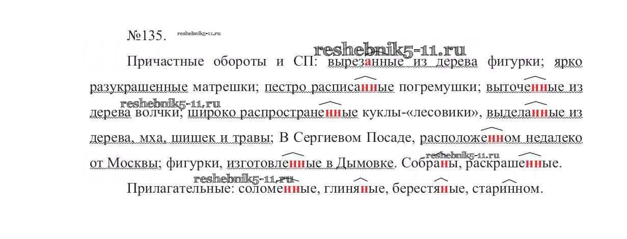 Готовая домашняя работа с ответами по Русскому языку за 7 класс Баранов, Ладыженская, Тростенцова Учебник УМК Просвещение 2015 ФГОС - Упражнения 135